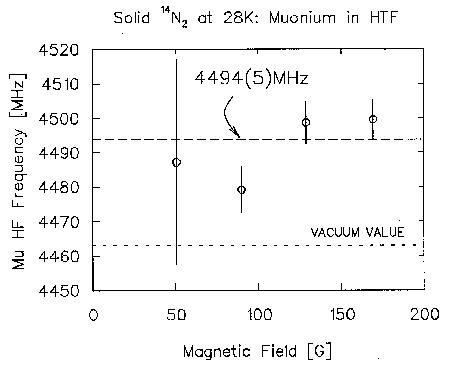 Mu HF Freq in s-14N2 @ 28K = 4494(5)MHz