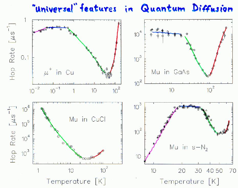 Universal Features in Quantum Diffusion: Cu, GaAs, CuCl, s-N2