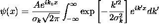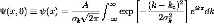 If we now let so that , we have = Completing the square, , giving where The definite integral has the value (look it up in a table of integrals!) giving or where That is, the rms width of the wave packet about its initial mean of is and the product of the x and k widths obeys the uncertainty relation at t = 0.