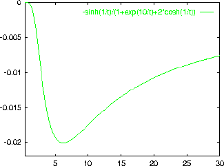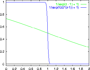ANSWER: The graph below shows f as a function of (i.e. in units of ) for and for . For z=1 ( or x=0) we always get and for (same as or ) we always get . For (same as or ) we get if and if . That case () also gives f = 0.119 at (z=2), as shown. The main thing to realize here is that becomes more and more like a step function as gets larger and larger (i.e. at low temperature).